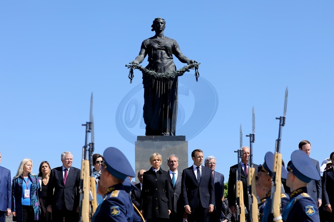 Emmanuel i Brigitte Macron zlozyli kwiaty przed pomnikiem Motherland w San Peterburgu