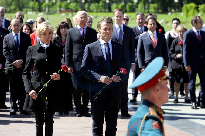 Emmanuel i Brigitte Macron zlozyli kwiaty przed pomnikiem Motherland w San Peterburgu