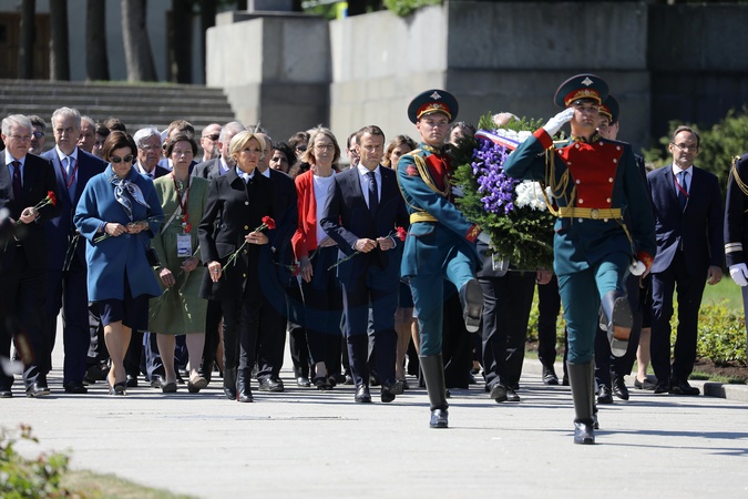 Emmanuel i Brigitte Macron zlozyli kwiaty przed pomnikiem Motherland w San Peterburgu