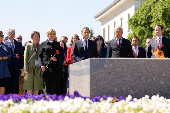 Emmanuel i Brigitte Macron zlozyli kwiaty przed pomnikiem Motherland w San Peterburgu
