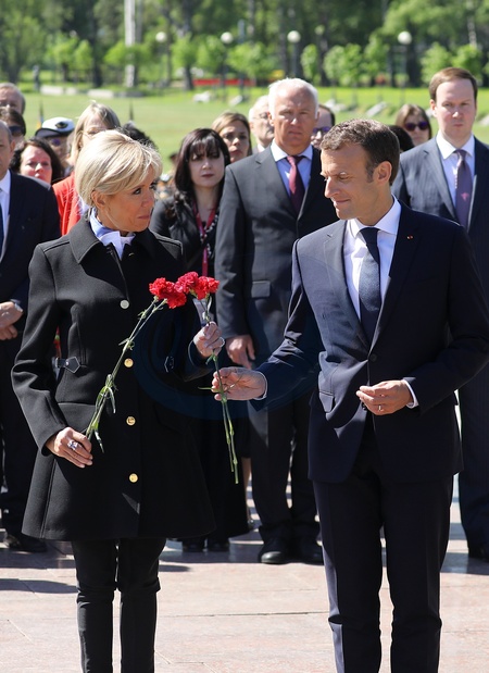 Emmanuel i Brigitte Macron zlozyli kwiaty przed pomnikiem Motherland w San Peterburgu