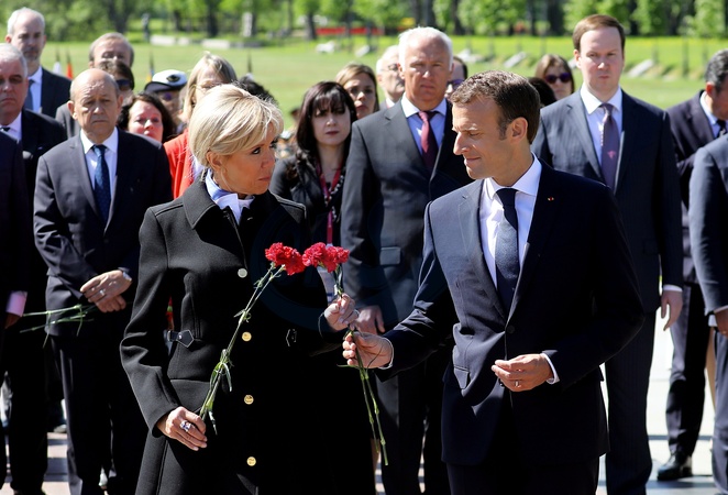 Emmanuel i Brigitte Macron zlozyli kwiaty przed pomnikiem Motherland w San Peterburgu
