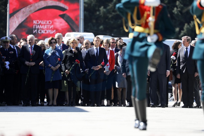 Emmanuel i Brigitte Macron zlozyli kwiaty przed pomnikiem Motherland w San Peterburgu