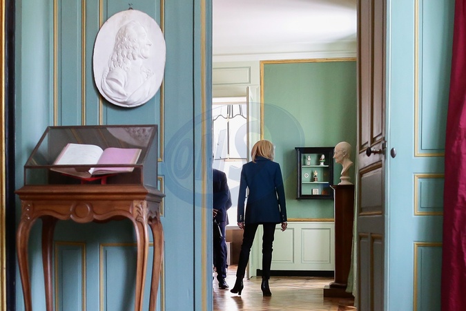Emmanuel i Brigitte Macron na otwarciu Chateau de Ferney-Voltaire