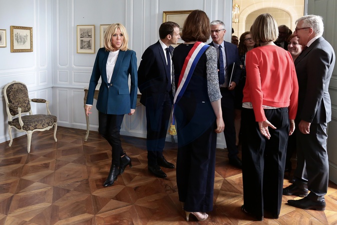 Emmanuel i Brigitte Macron na otwarciu Chateau de Ferney-Voltaire