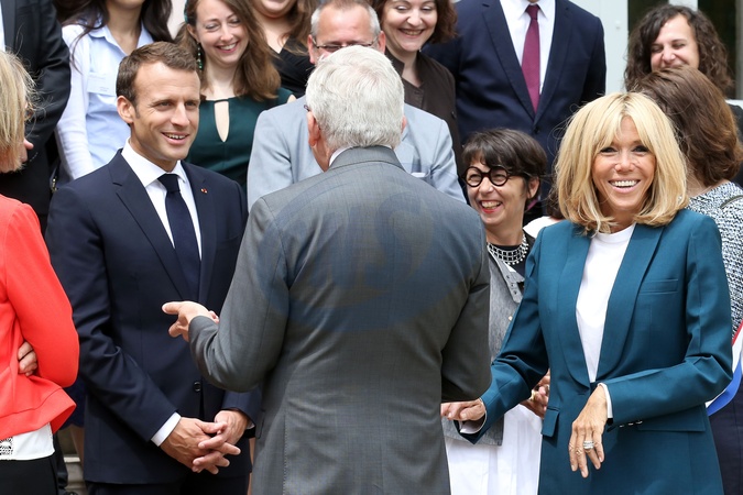 Emmanuel i Brigitte Macron na otwarciu Chateau de Ferney-Voltaire