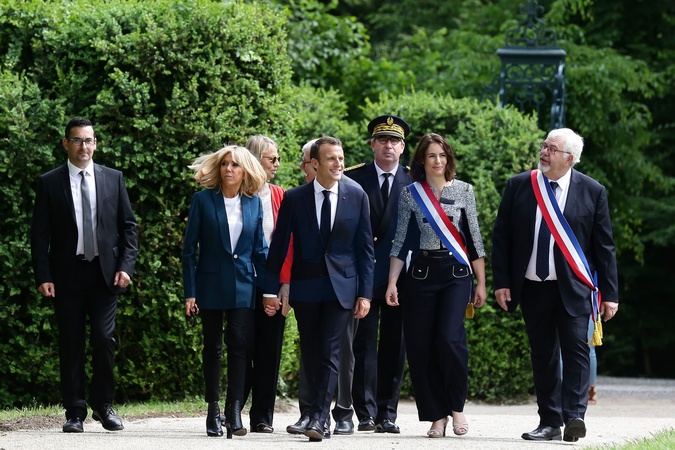 Emmanuel i Brigitte Macron na otwarciu Chateau de Ferney-Voltaire