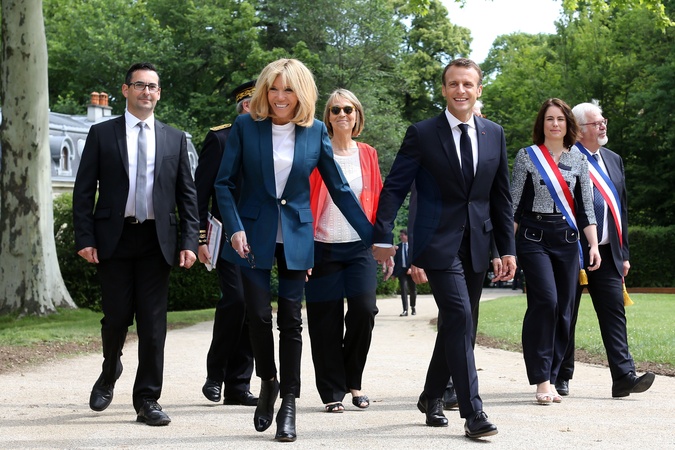 Emmanuel i Brigitte Macron na otwarciu Chateau de Ferney-Voltaire
