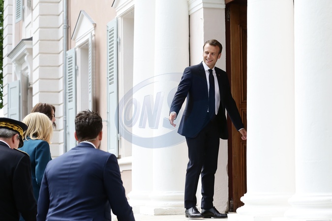 Emmanuel i Brigitte Macron na otwarciu Chateau de Ferney-Voltaire