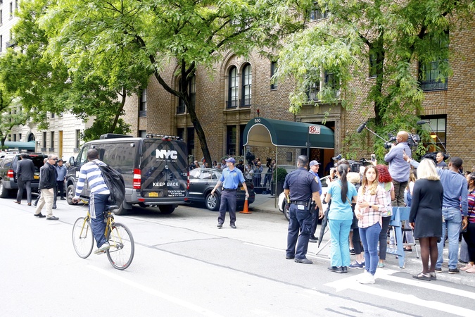 Samobojstwo Kate Spade - Policjanci wywoza cialo projektantki