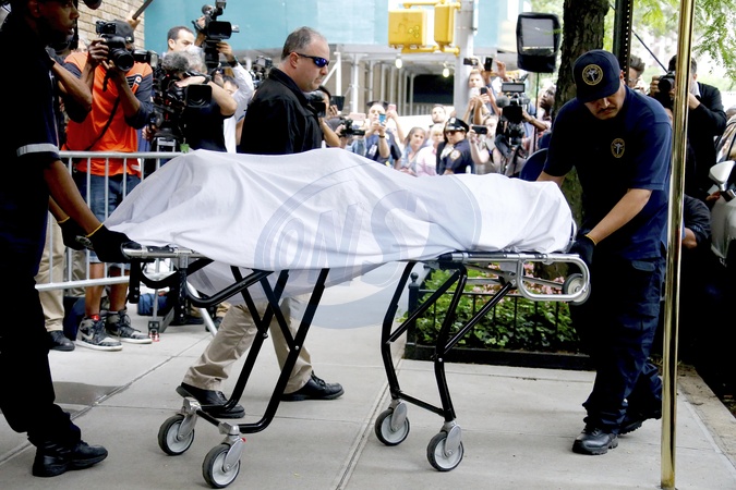 Samobojstwo Kate Spade - Policjanci wywoza cialo projektantki