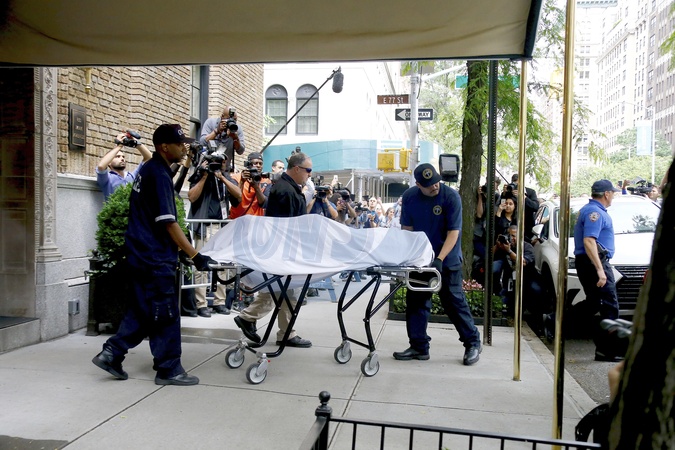 Samobojstwo Kate Spade - Policjanci wywoza cialo projektantki