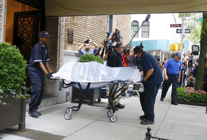 Samobojstwo Kate Spade - Policjanci wywoza cialo projektantki
