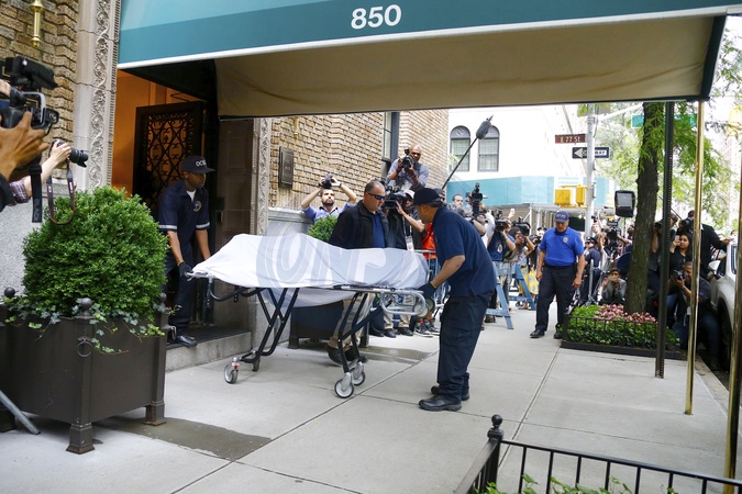 Samobojstwo Kate Spade - Policjanci wywoza cialo projektantki