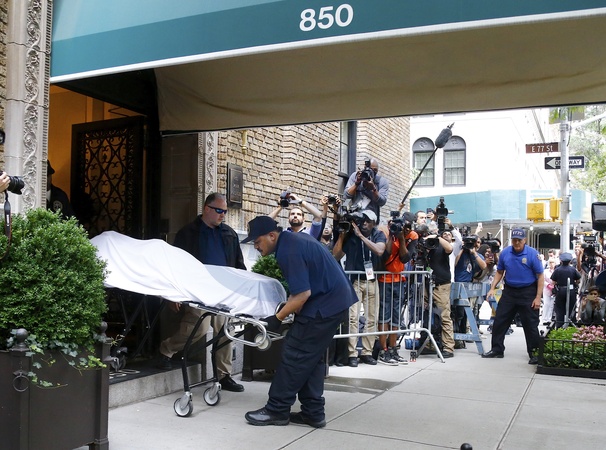 Samobojstwo Kate Spade - Policjanci wywoza cialo projektantki