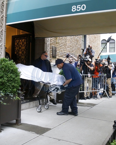 Samobojstwo Kate Spade - Policjanci wywoza cialo projektantki