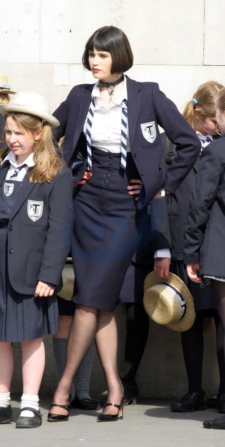 Catherine Murino na planie filmu 2007 St Trinians, Traffalgar Square, Londyn