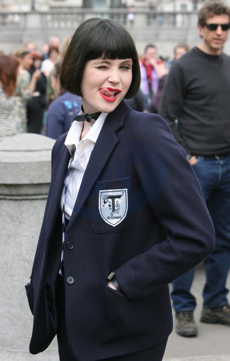 Catherine Murino na planie filmu 2007 St Trinians, Traffalgar Square, Londyn