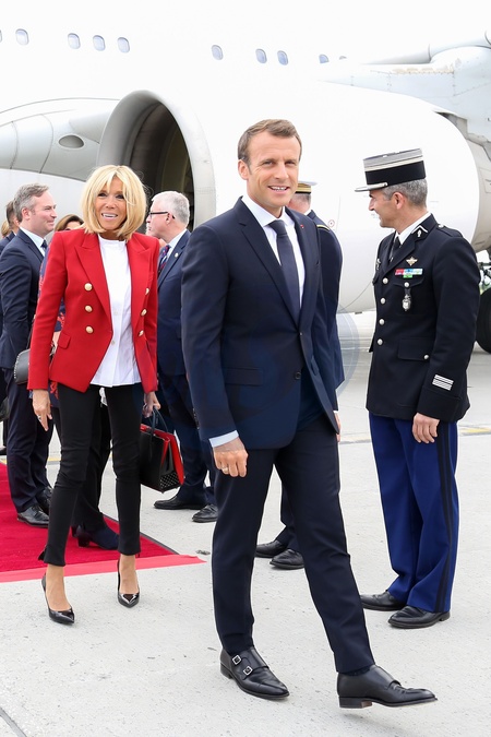 Brigitte i Emamnuel Macron na lotnisku w Kanadzie