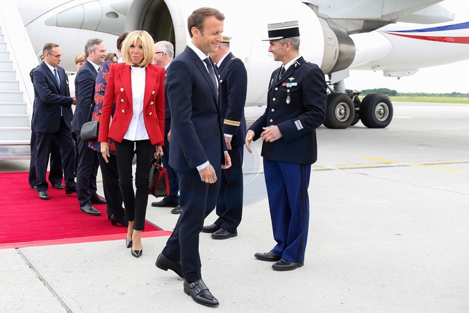 Brigitte i Emamnuel Macron na lotnisku w Kanadzie