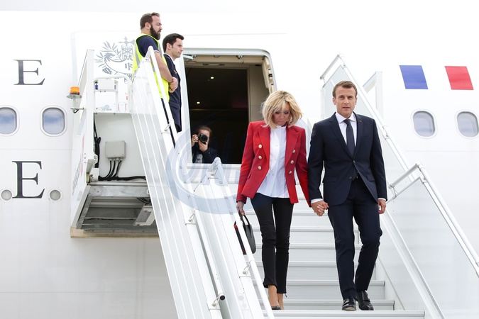 Brigitte i Emamnuel Macron na lotnisku w Kanadzie