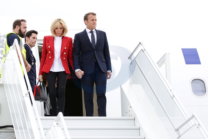 Brigitte i Emamnuel Macron na lotnisku w Kanadzie