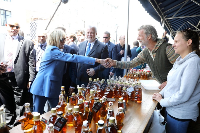 Brigitte i Emmanuel Macron degustuja alkohole w Montrealu