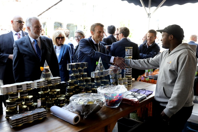 Brigitte i Emmanuel Macron degustuja alkohole w Montrealu