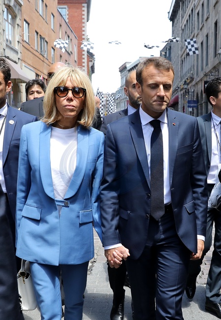 Brigitte i Emmanuel Macron degustuja alkohole w Montrealu