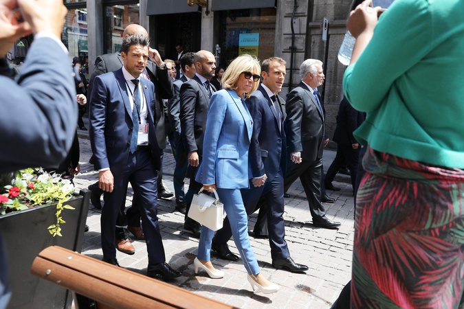 Brigitte i Emmanuel Macron degustuja alkohole w Montrealu