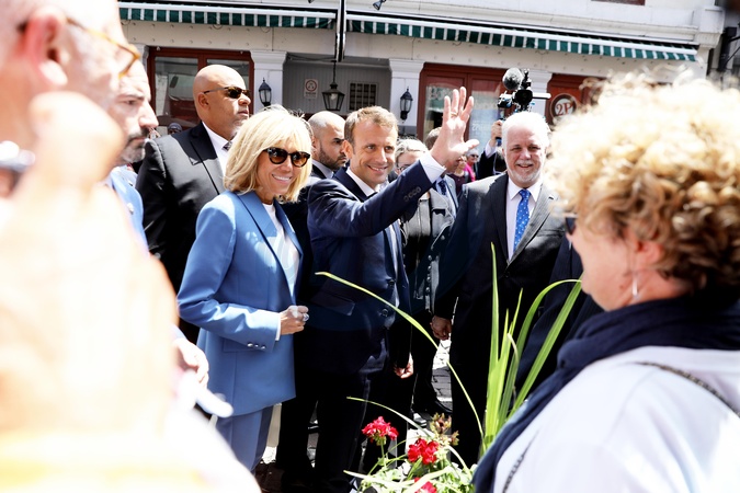 Brigitte i Emmanuel Macron degustuja alkohole w Montrealu