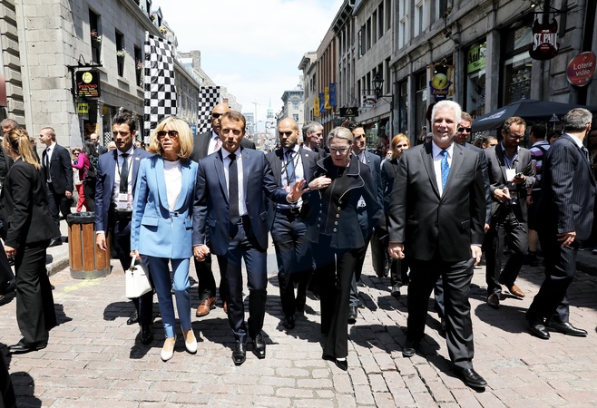 Brigitte i Emmanuel Macron degustuja alkohole w Montrealu