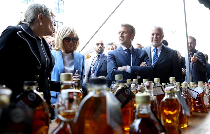 Brigitte i Emmanuel Macron degustuja alkohole w Montrealu