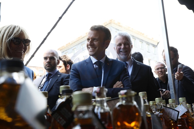 Brigitte i Emmanuel Macron degustuja alkohole w Montrealu