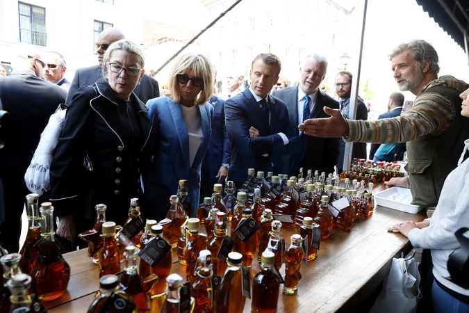 Brigitte i Emmanuel Macron degustuja alkohole w Montrealu