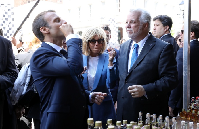 Brigitte i Emmanuel Macron degustuja alkohole w Montrealu