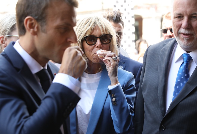 Brigitte i Emmanuel Macron degustuja alkohole w Montrealu