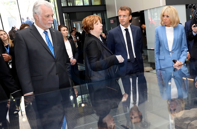 Brigitte i Emmanuel Macron degustuja alkohole w Montrealu