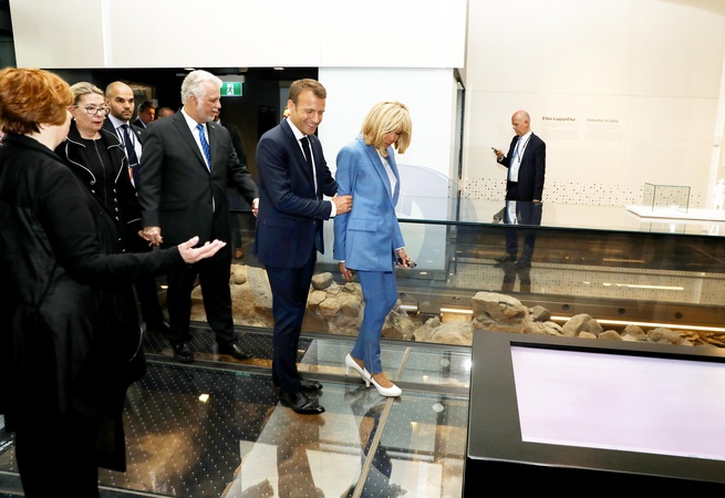 Brigitte i Emmanuel Macron degustuja alkohole w Montrealu
