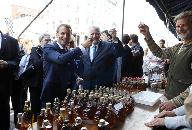Brigitte i Emmanuel Macron degustuja alkohole w Montrealu