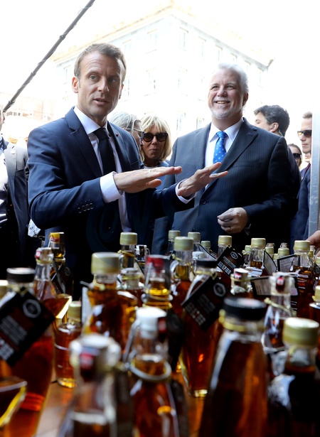 Brigitte i Emmanuel Macron degustuja alkohole w Montrealu