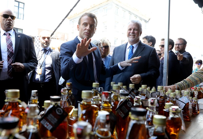 Brigitte i Emmanuel Macron degustuja alkohole w Montrealu