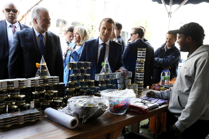 Brigitte i Emmanuel Macron degustuja alkohole w Montrealu