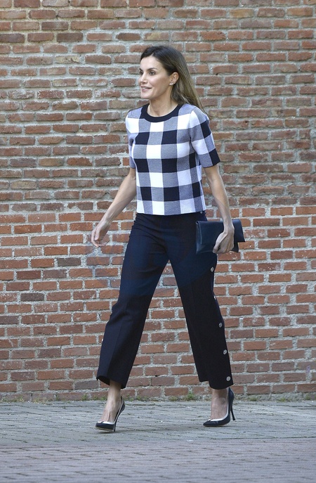 Krolowa Letizia w kraciastej bluzce na spotkaniu ze studentami