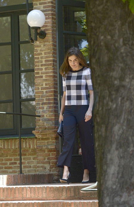 Krolowa Letizia w kraciastej bluzce na spotkaniu ze studentami