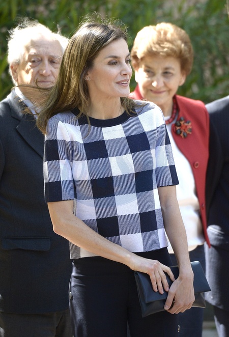 Krolowa Letizia w kraciastej bluzce na spotkaniu ze studentami