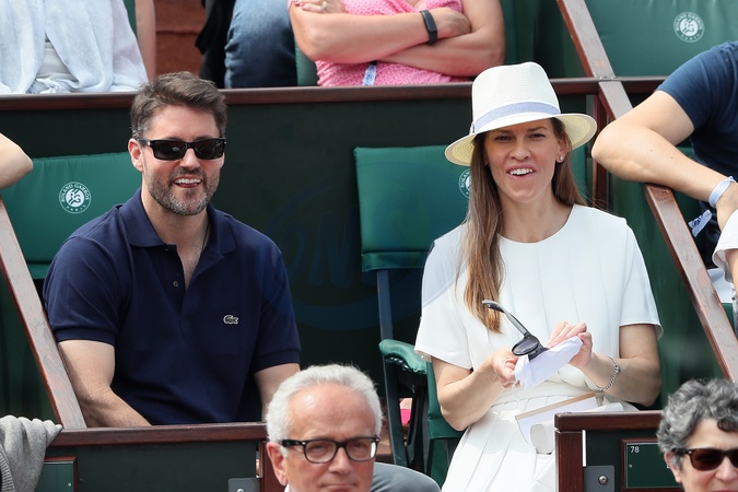 Hilary Swank z chlopakiem na trybunach french open