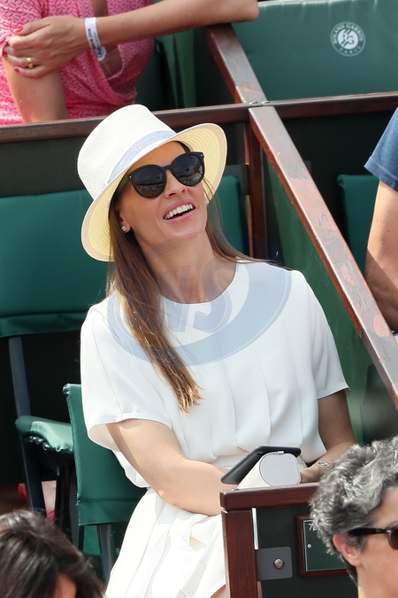 Hilary Swank z chlopakiem na trybunach french open
