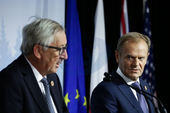 DONALD TUSK i Jean-Claude Juncker na konferencji na G7