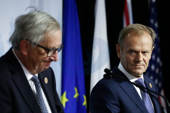 DONALD TUSK i Jean-Claude Juncker na konferencji na G7